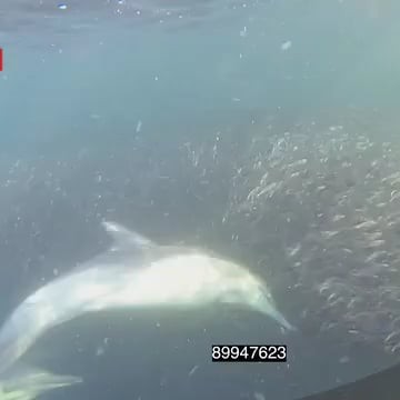 Cape fur Seals Common Dolphins circling around going through Sardine baitball feeding UNDERWATER HANDHELD