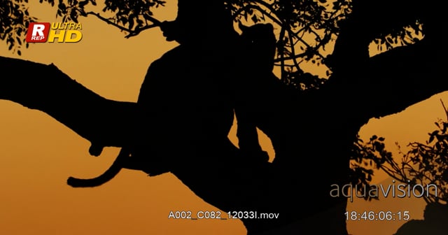 Leopard Silhouette, sitting on a tree and looking around.