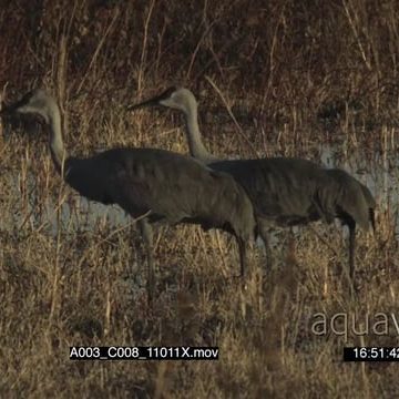 2 sandhill cranes walking Searching for food