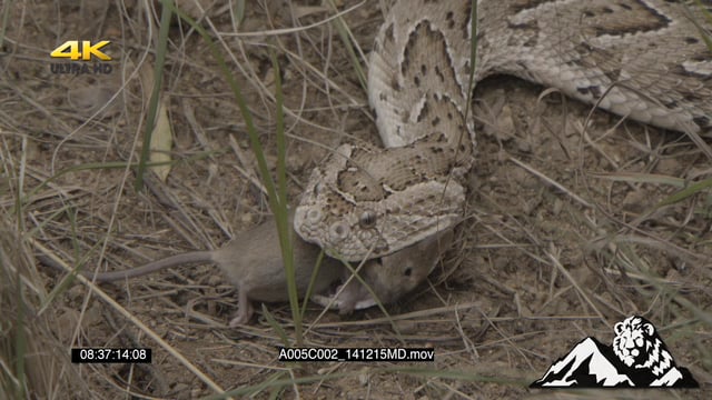 Puff adder killing by jabbing fang into a mouse PREDATION