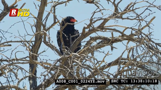 Bateleur eagle sitting on top of a tree, scouting and looking around.