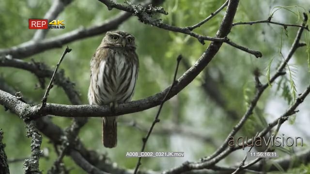 Ferruginous pygmy owl hunting for preys from a perch and looking around, during daytime. MWS.