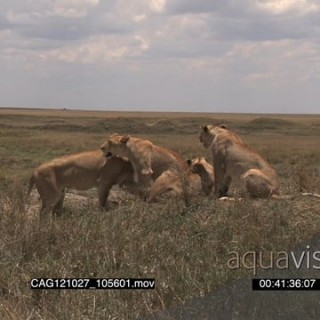 African Lionesses sitting and laying down on bushveld showing affection LWS HAND