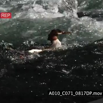 Female Common Merganser swimming and fishing in La Hardy Rapids MLS PAN HAND