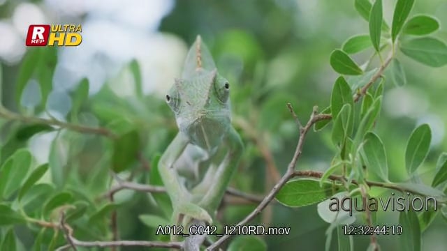 Veiled Chameleon trying to walk, looking around 360 and protecting territory.