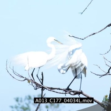 Great Egret landing on tree next to another one standing then flying away MWS