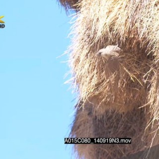 Sociable Weaver well camouflaged on side of nest flying off SLOWMO
