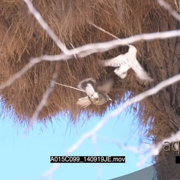 Sociable weavers flying in and out of nest carrying dry grass in beaks building nest SLOWMO