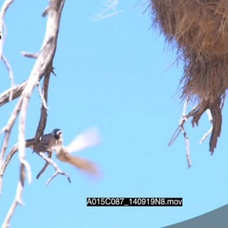 Sociable Weavers flying in and out of nest