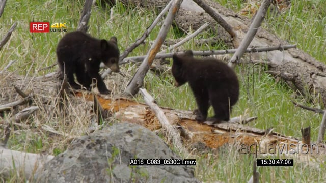 A pair of black bear cubs playing around.