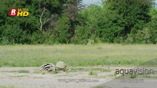 African Wild dog pack hunting stalking Zebra herd charging chasing dogs away Defensive Protective behaviour