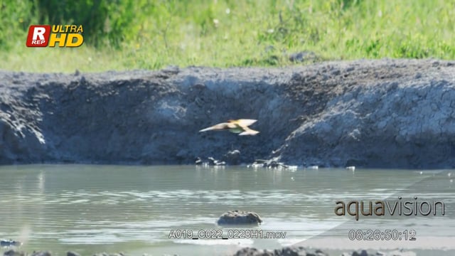 European bee-eater hunting, catching and feeding on flying insects.