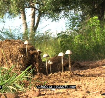 Mushrooms fungi growing in elephant dung Day GREEN LS