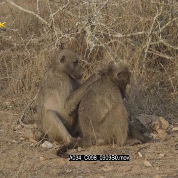 Chacma Baboons sitting and grooming another 2S MLS