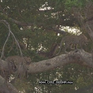 Leopard sleeping on tree and the other walking 2S LA LWS