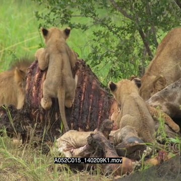A pride of lions with a cubs feeding on a carcass GREEN GOOD LIGHT