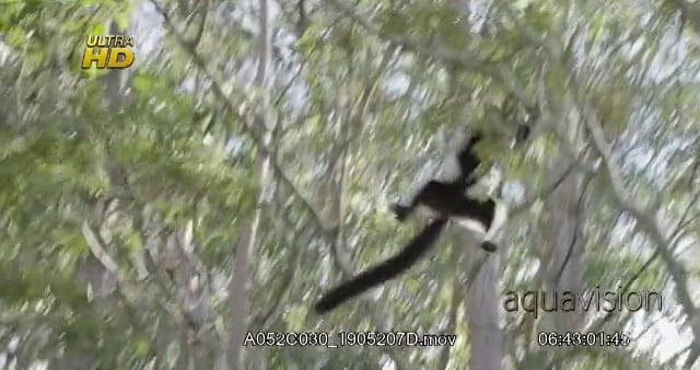 White-fronted brown lemur leaping and dancing through the trees.