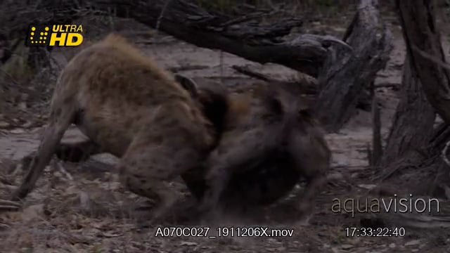 Dominance display of a pair of Hyenas intimidating, aggressive towards each other and fighting, late afternoon.