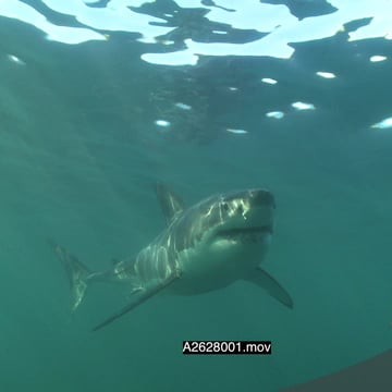 Great White Shark swimming towards camera underwater PROFILE