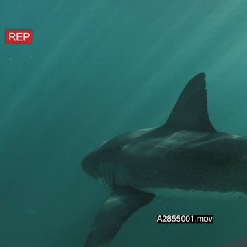 Great White Shark swimming towards camera underwater in ocean then turning and passing by PROFILE