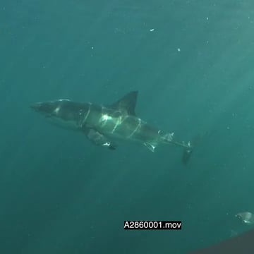 Great White Shark gently swimming underwater in ocean PAN HAND