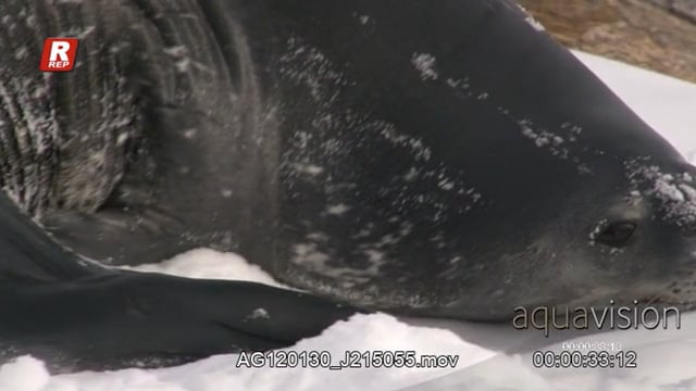 Weddell seal looking around, crawl/slide on stomach and ice on nostrils.
