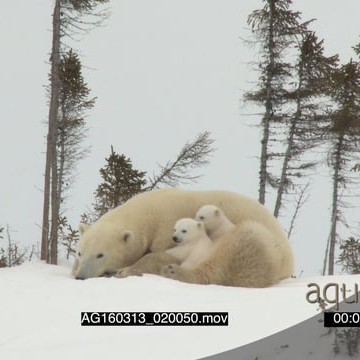 Polar bear mother resting cuddling with cubs Protective behaviour
