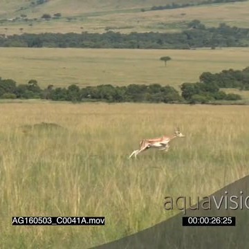 Cheetah (Acinonyx jubatus) running towards Grant’s gazelle.
