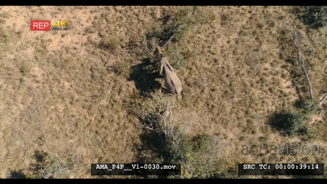 Aerial Drone African elephant and calve feeding off bushes
