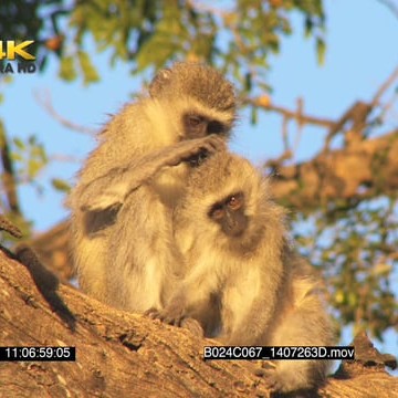 Vervet Monkeys grooming on tree and looking at Camera LA CU