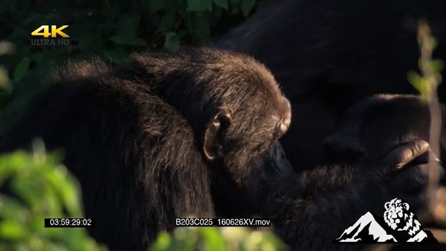 Chimpanzees sitting and grooming one another Mating behaviour.
