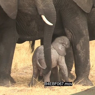African elephant baby suckle from mother surrounded by rest of herd