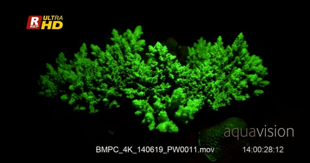 Florescent Staghorn Coral, Acropora spp, at night.
