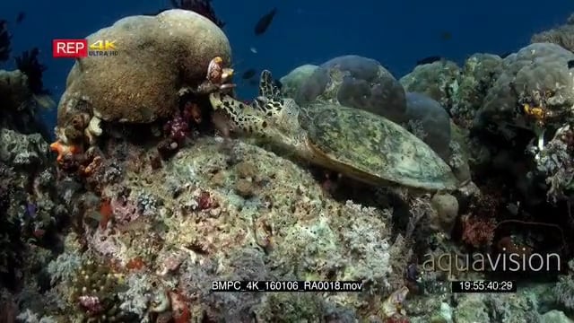 Medium shot of a hungry hawksbill turtle, Eretmochelys imbricata eating some soft coral