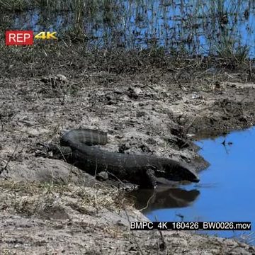 A Monitor Lizard searching for food with its forked blue tongue on the Chobe River