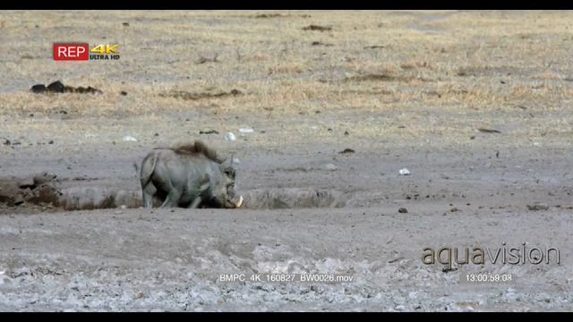 Warthog mother and piglets walking away from the water point