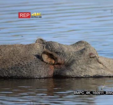 Hippo fast asleep in water CU