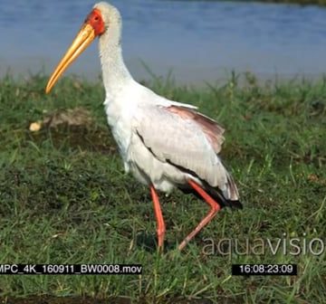 Yellow-billed stork searching for food