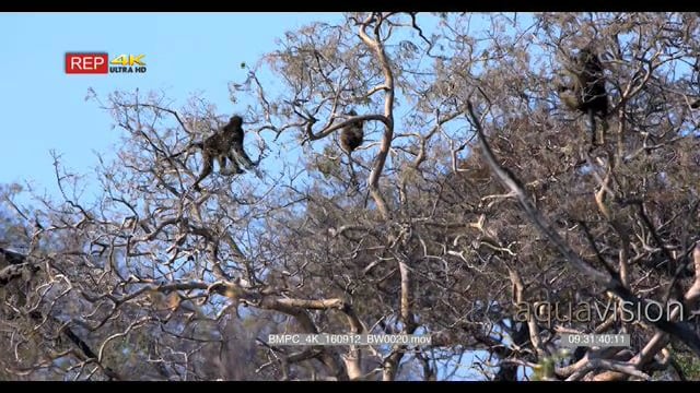 Baboons eating berries off the tree tops