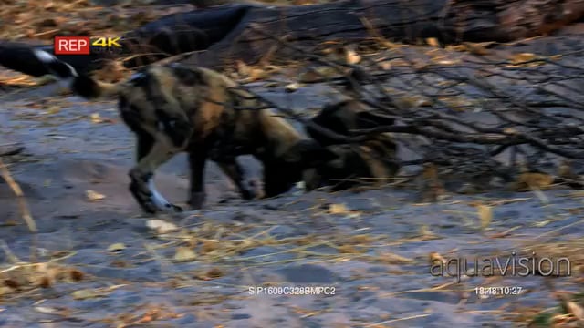 Two African Wild Dogs Play fighting.