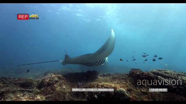 Reef manta rays swim past camera
