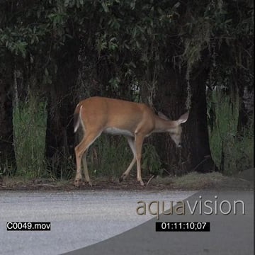 Whitetail Deer mother walking and grazing with young WS PAN GENERAL BEHAVIOUR