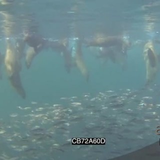 BAITBALL UW GALAPAGOS SHARKS, GALAPAGOS DOLPHINS AND BONITO TUNA AND BIRDS DIVING INTO BAITBALL