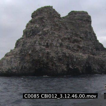 Scenic shots of islands and cliffs, sea birds flying across LS; WS