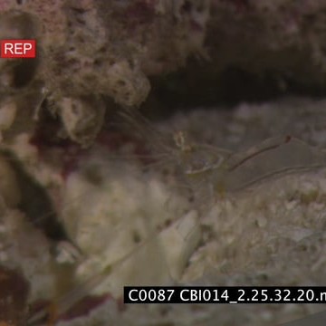 Shrimp walks on seabed, close to Lachner's Tonguesole camouflaged in sand FF; WS