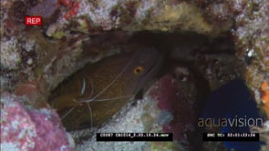 Undulated Moray in colourful coral reef CU