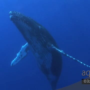 Humpback calf whale swimming around UW
