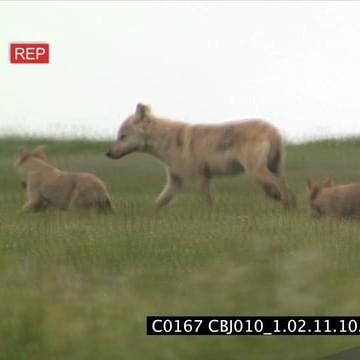 Adult Wolf with puppies running around and playing FOCUS PULL GREEN