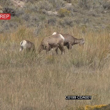 A herd of Bighorn sheep's walking, standing and grazing WS