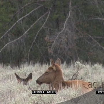 Female Elk Deer sleeping and next to its calf GENERAL BEHAVIOUR